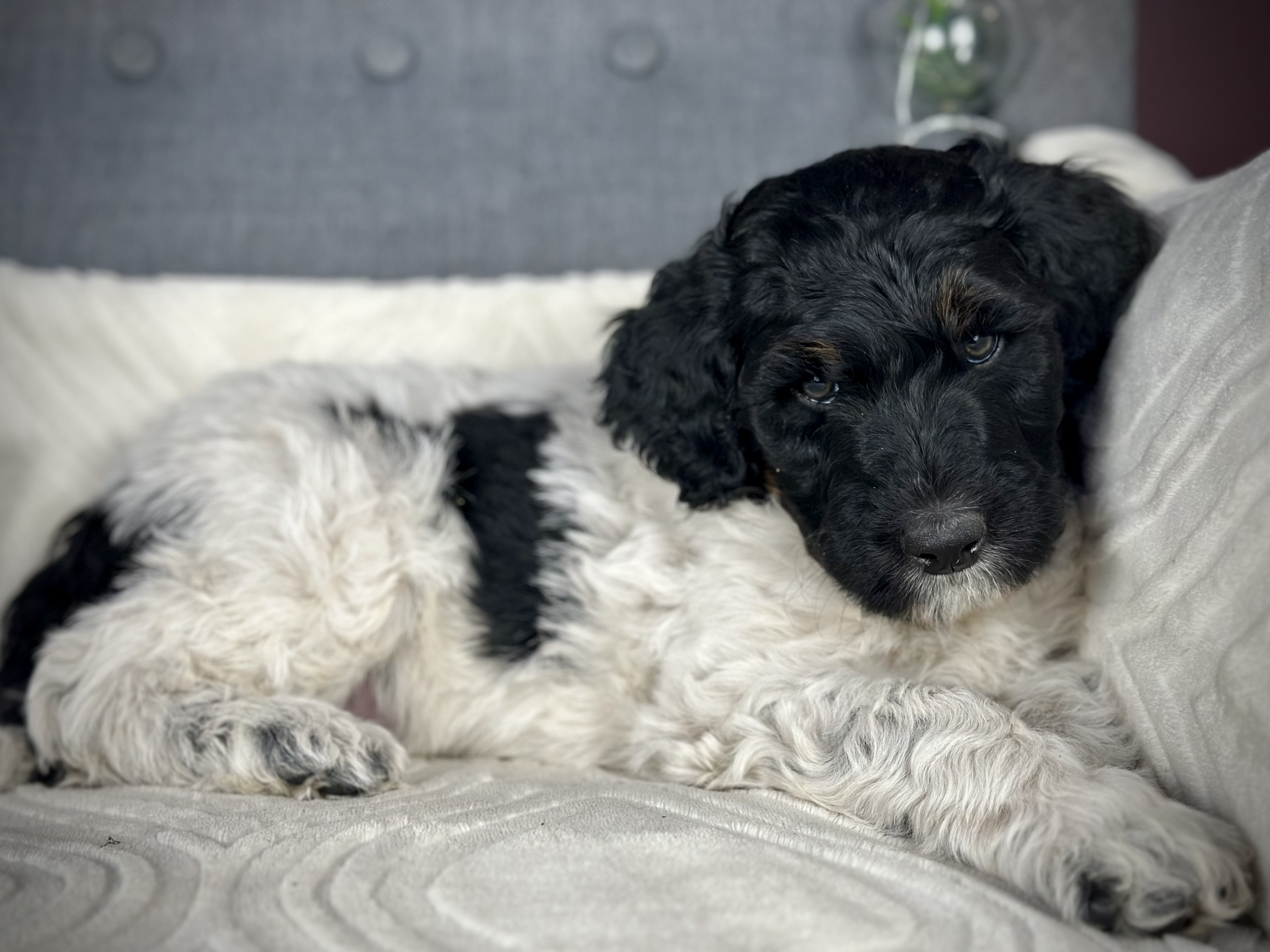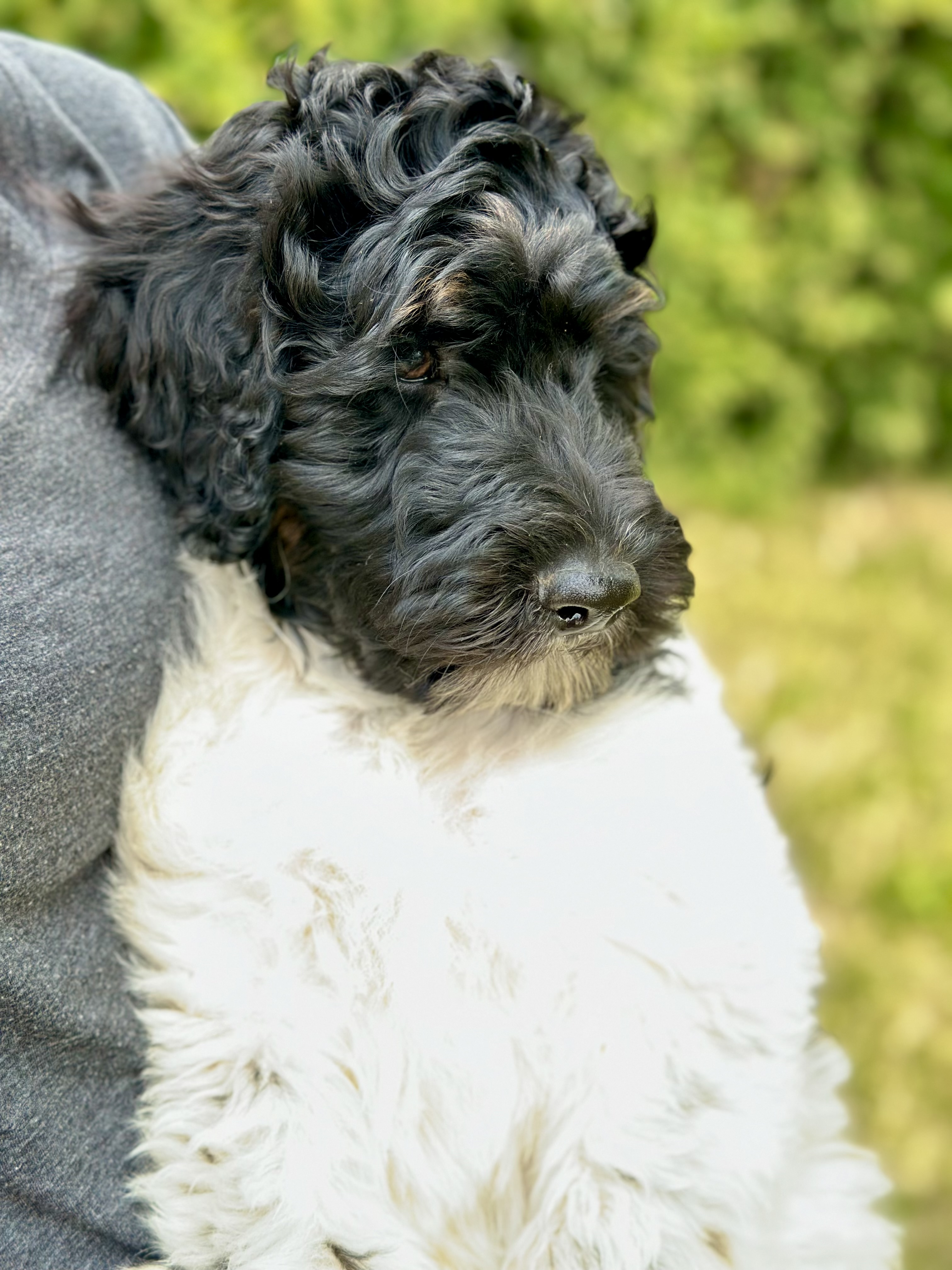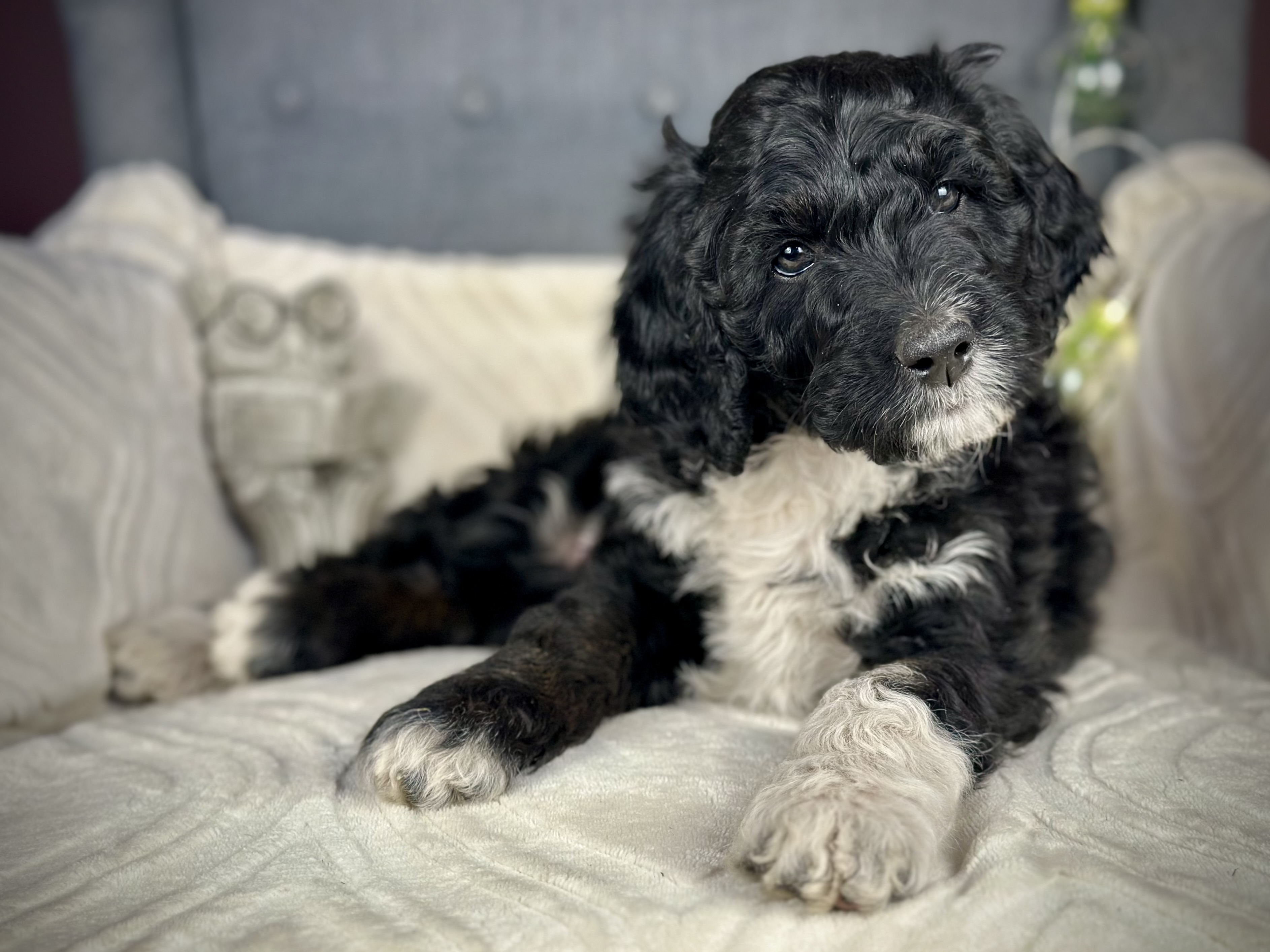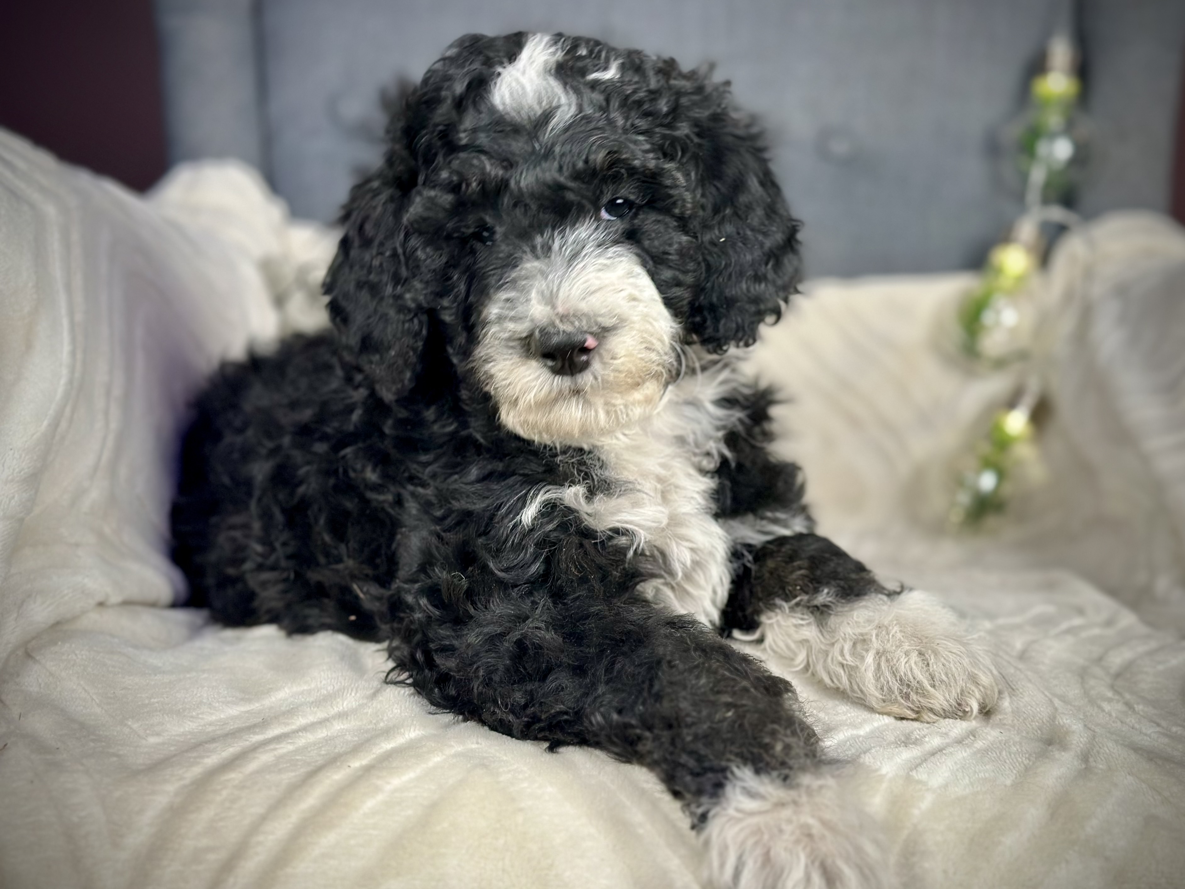 Cocoa (Standard Poodle) and Chewie (multigenerational Standard Bernedoodle). Expected to be 50-70lbs