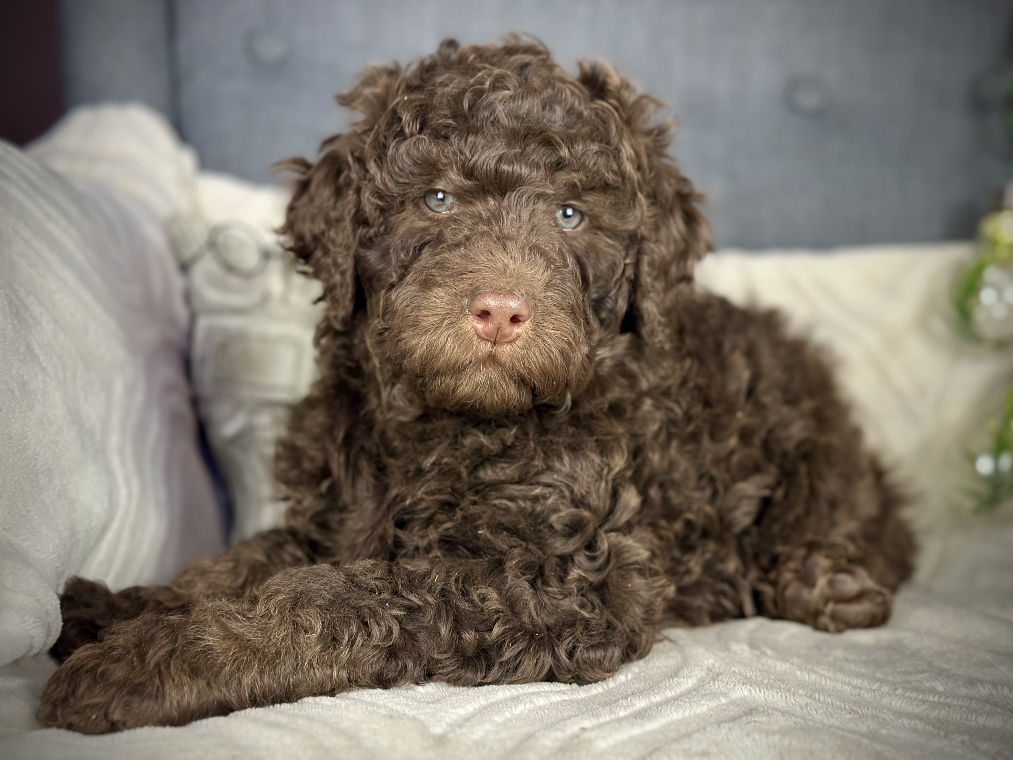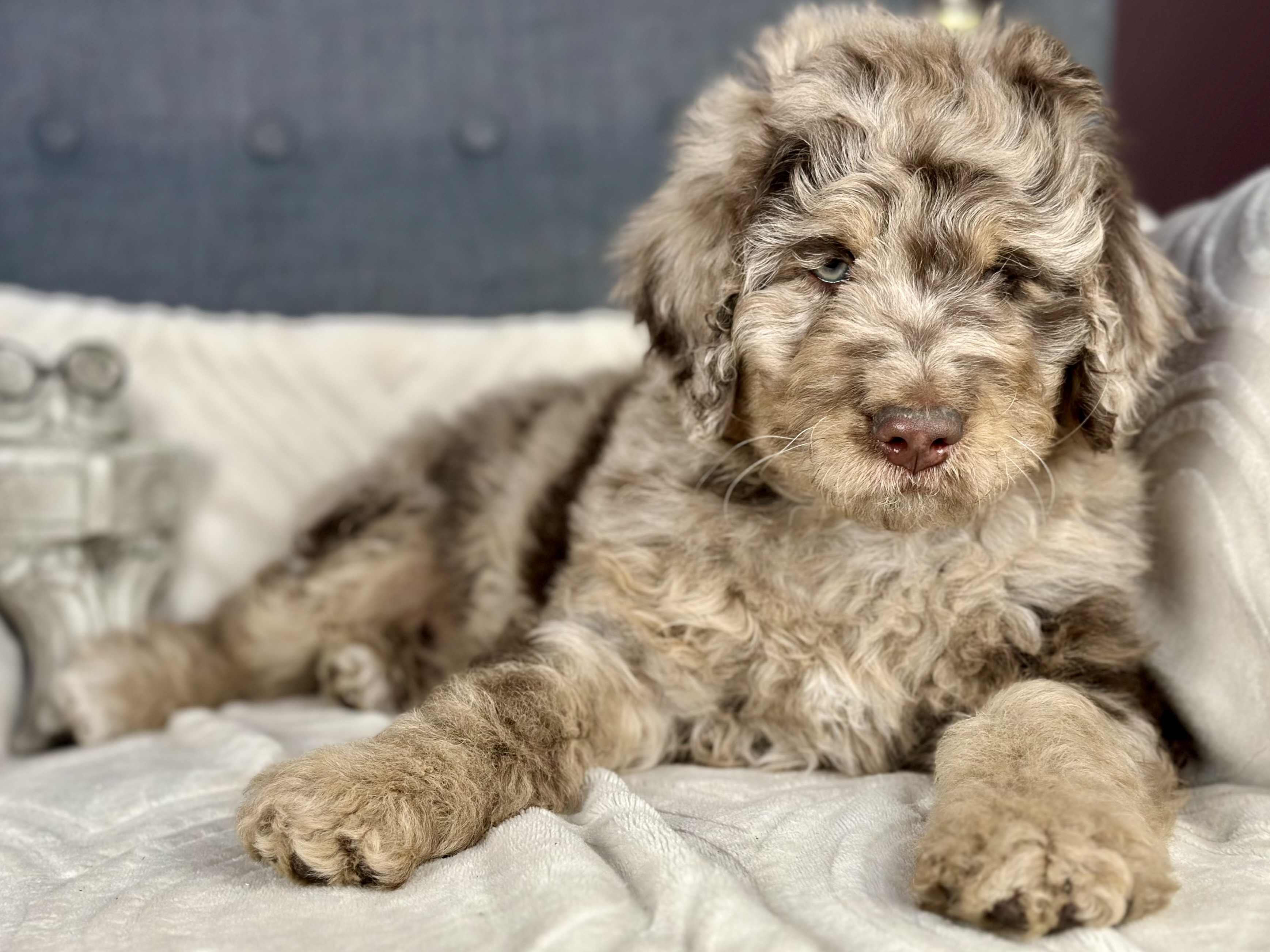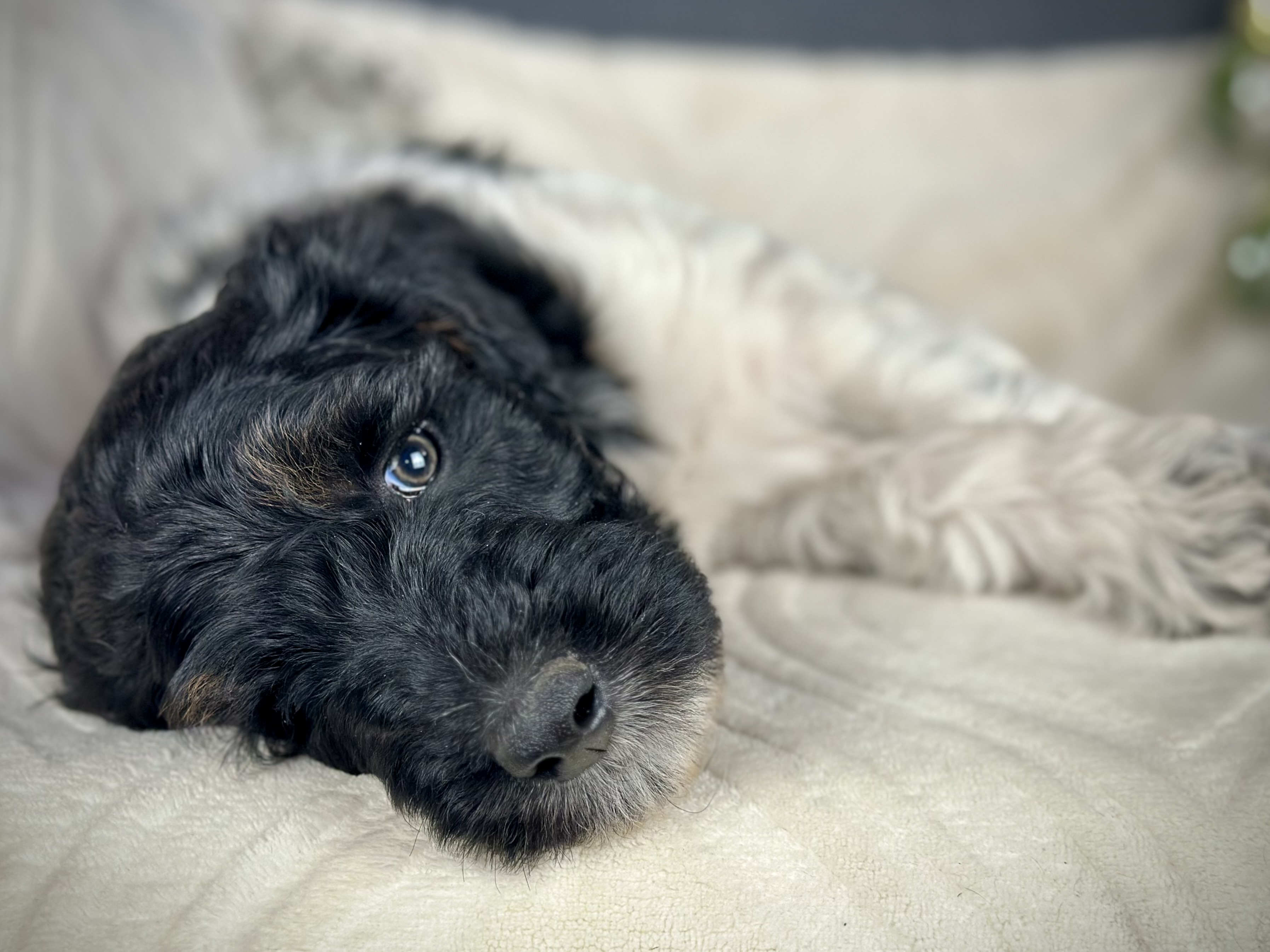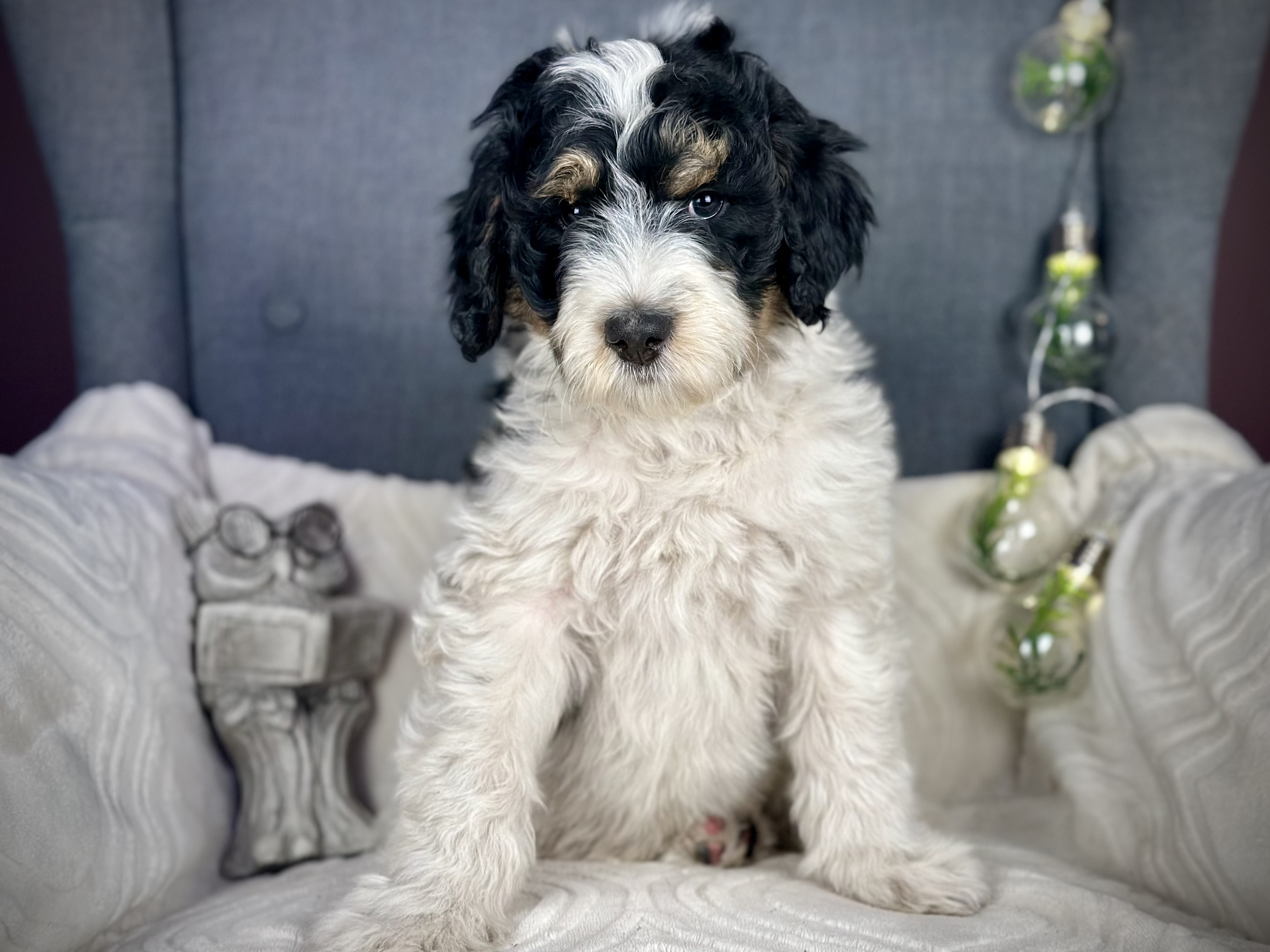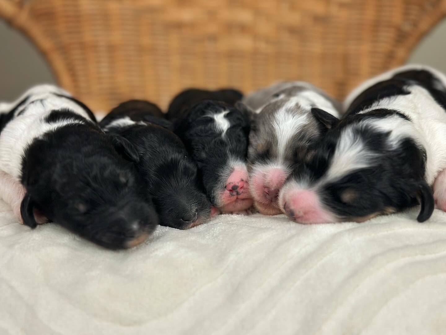 Cocoa (Standard Poodle) and Chewie (multigenerational Standard Bernedoodle). Expected to be 50-70lbs