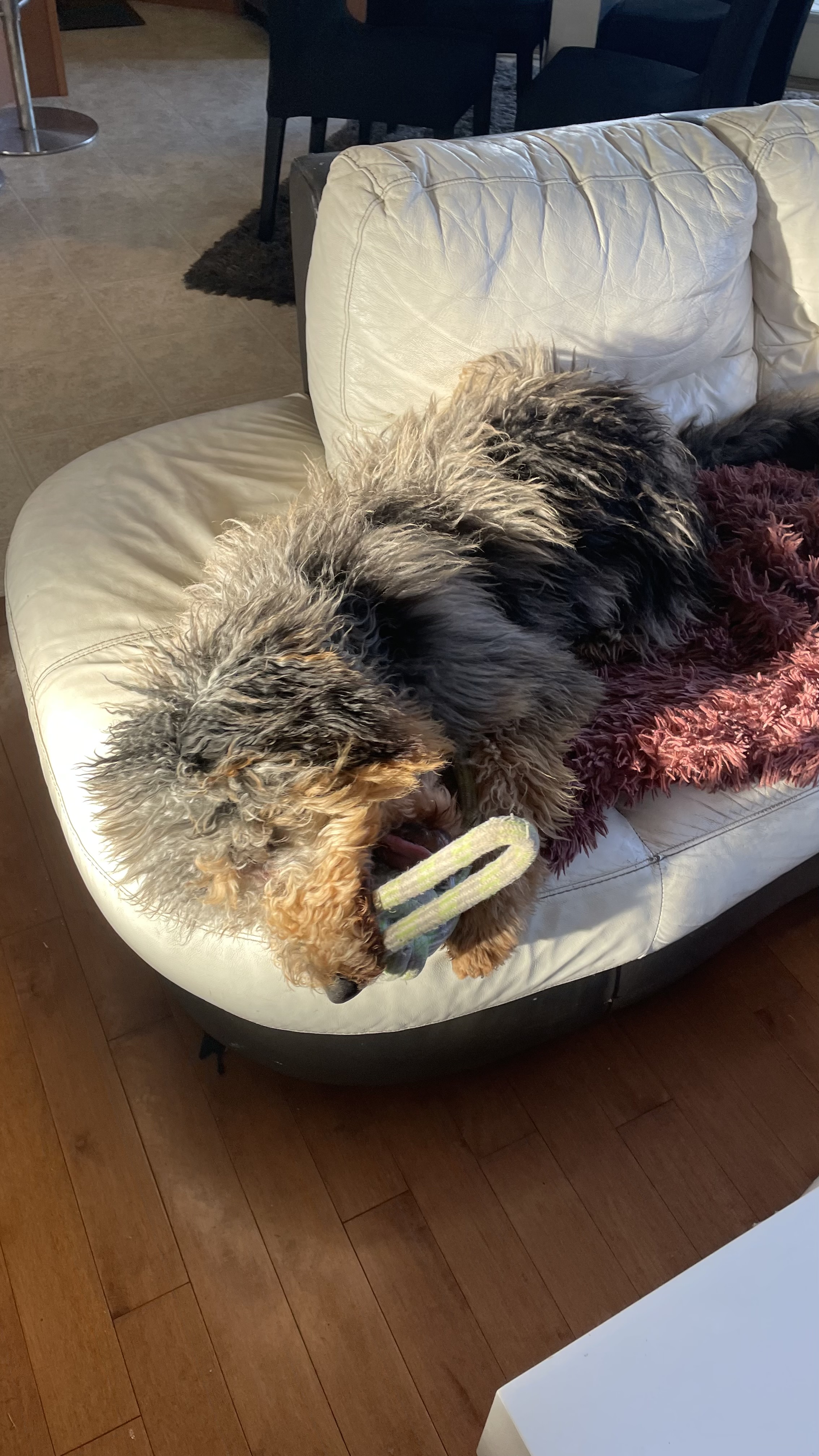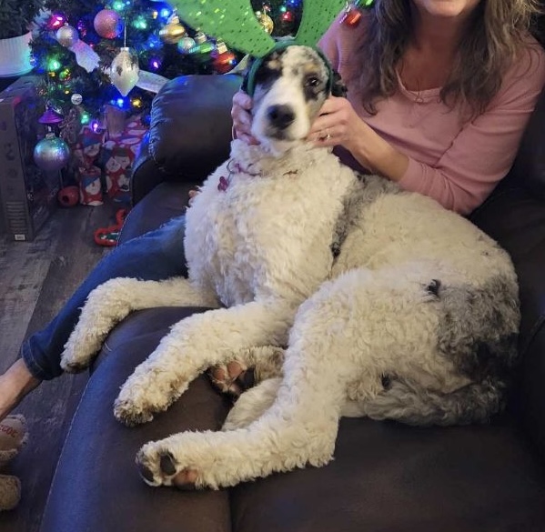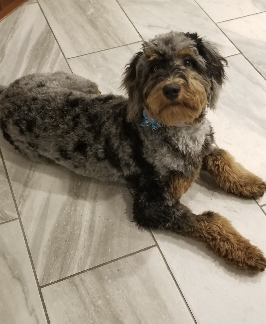 Scooter (was Timbit) – parti (white) and Merle and tan