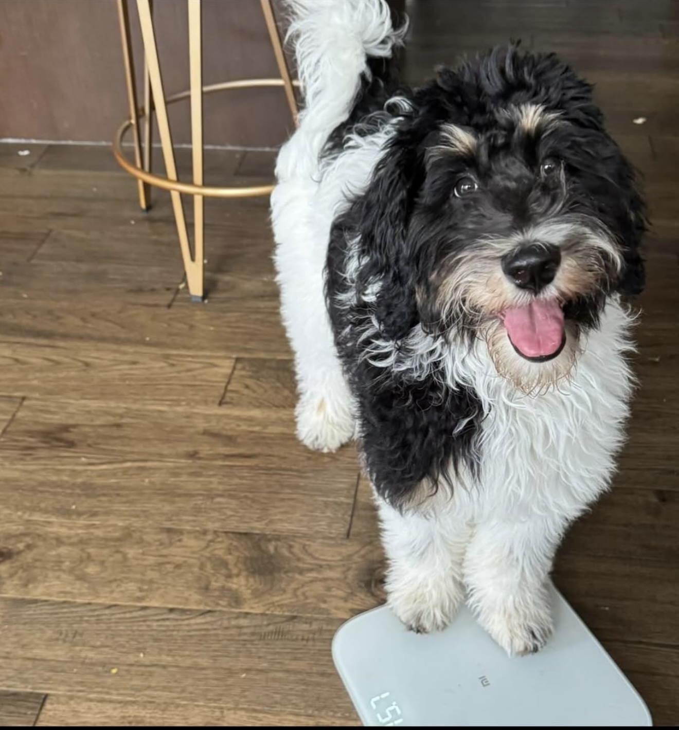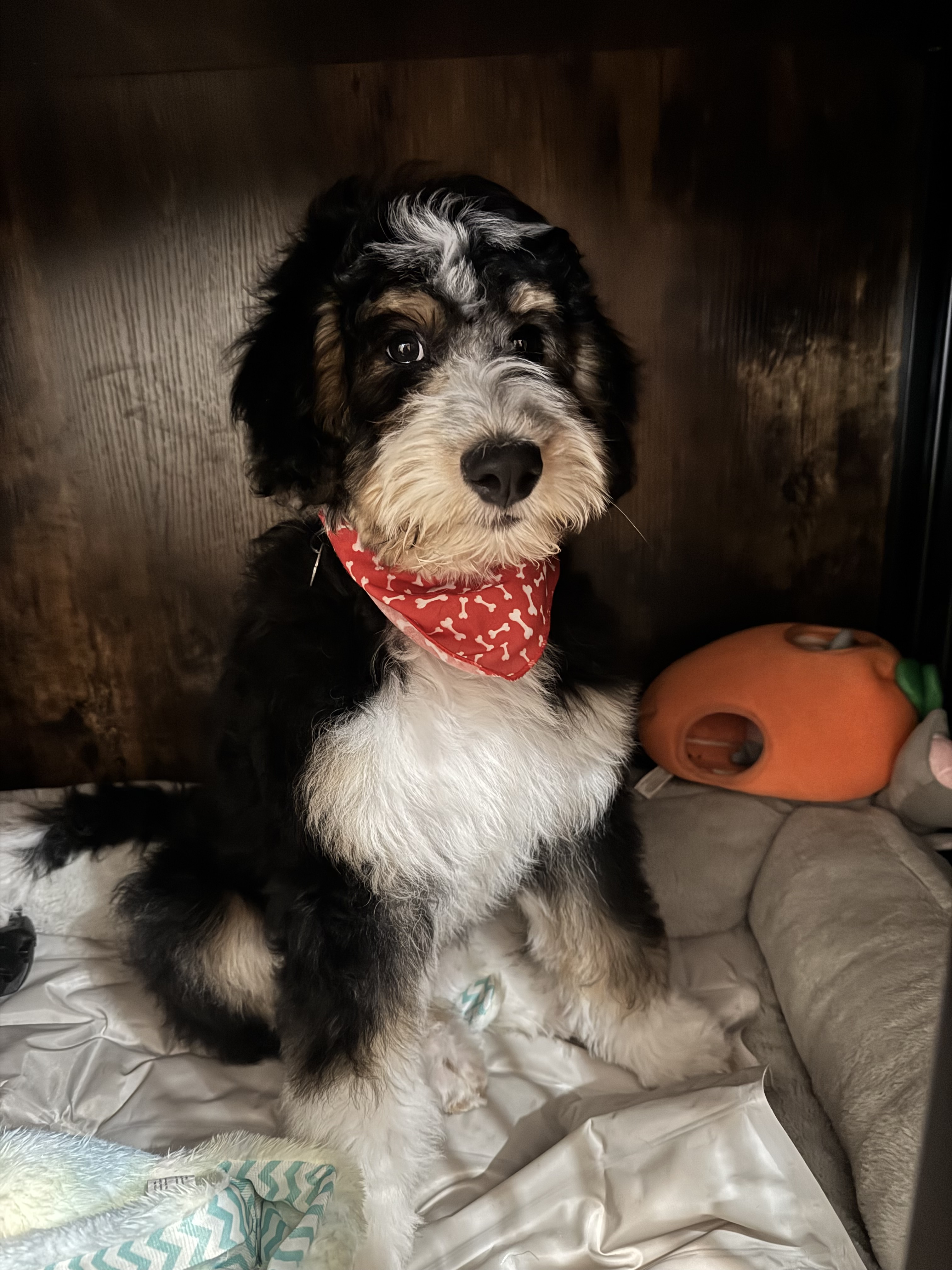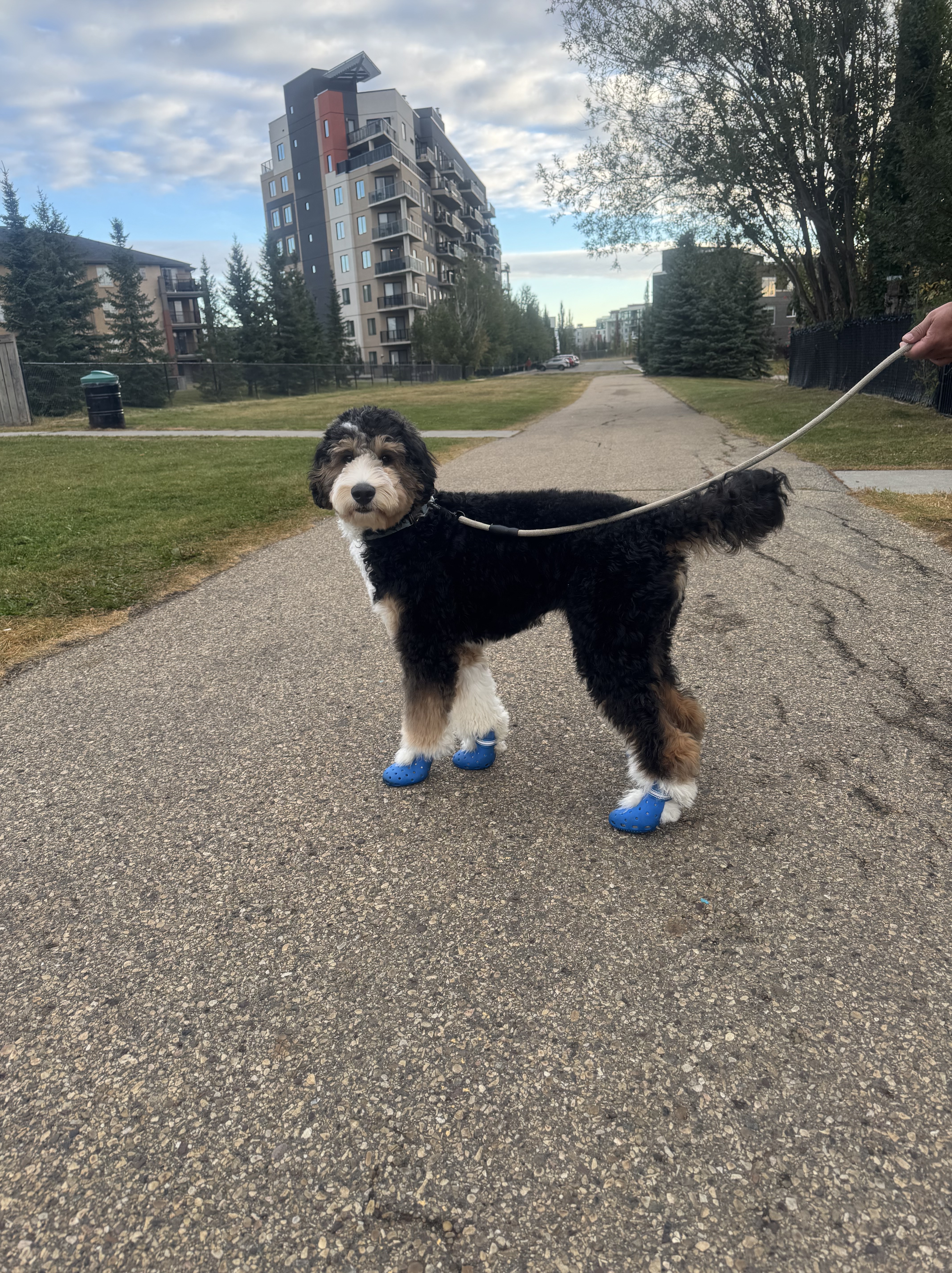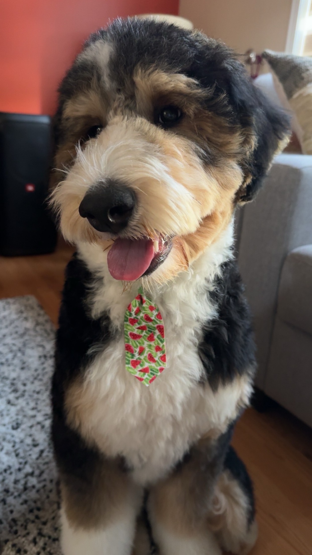Liza (Standard Poodle) and Chewie (multigenerational Standard Bernedoodle). Expected to be approx 45 -55lbs as adults.