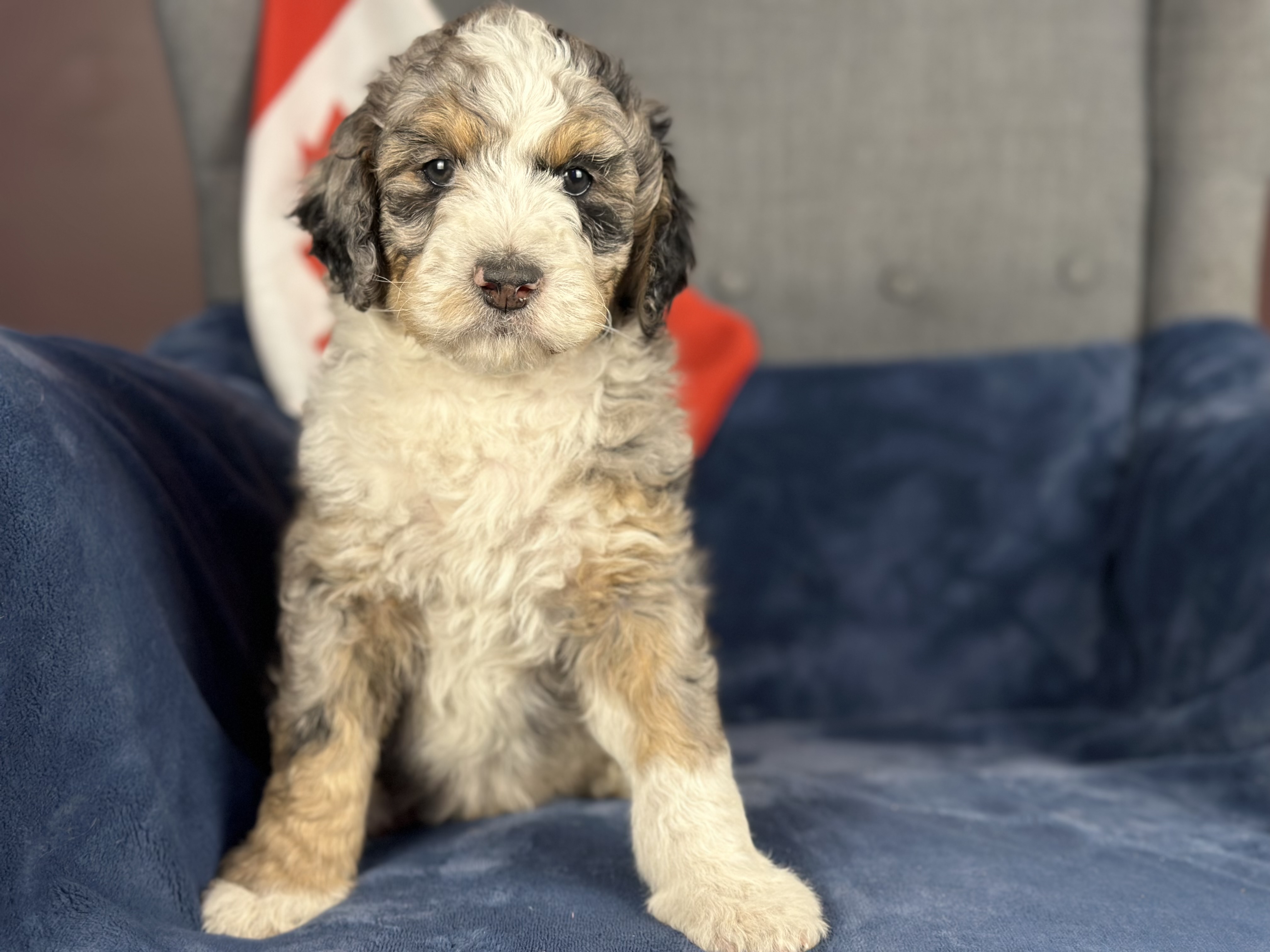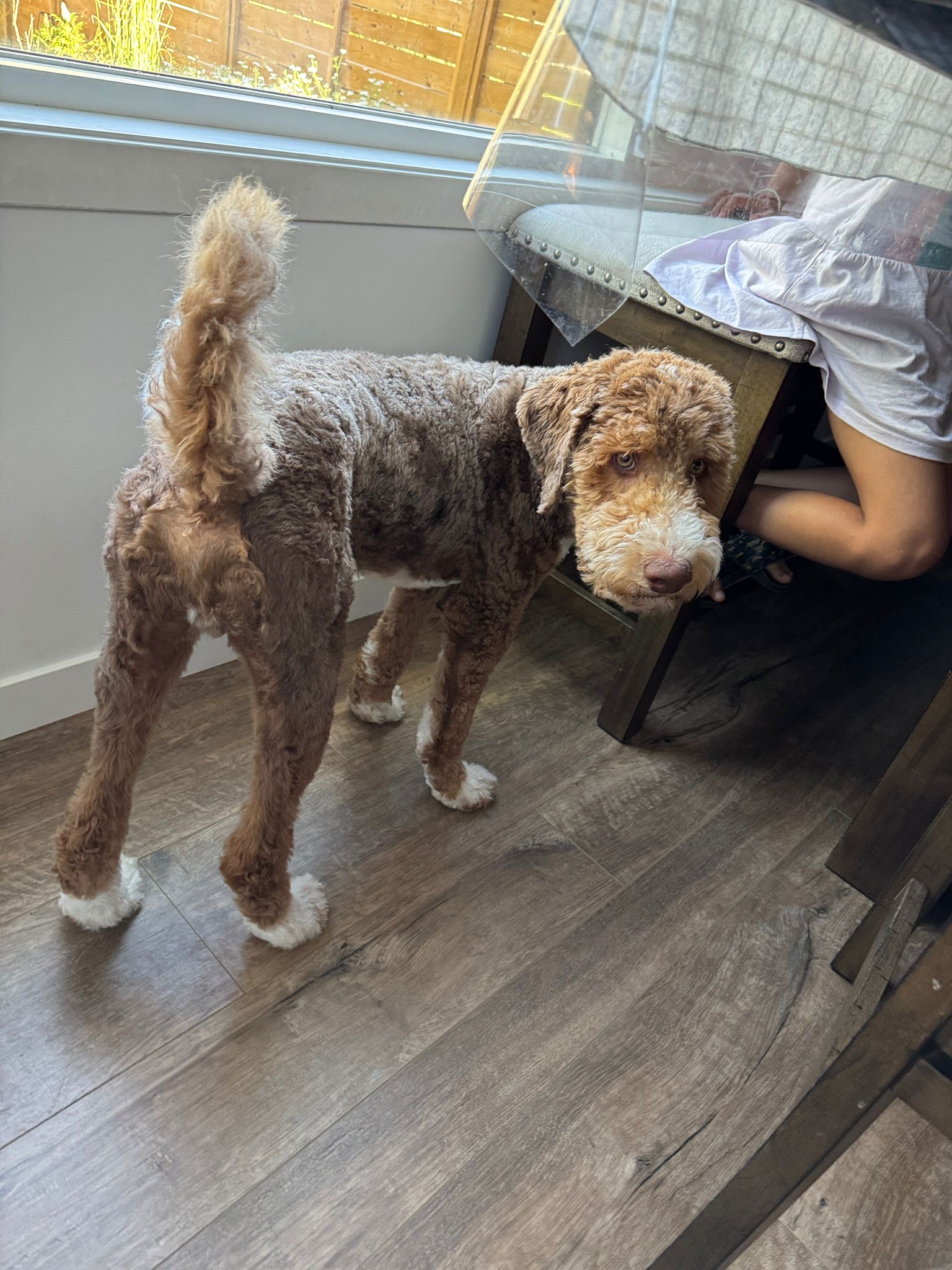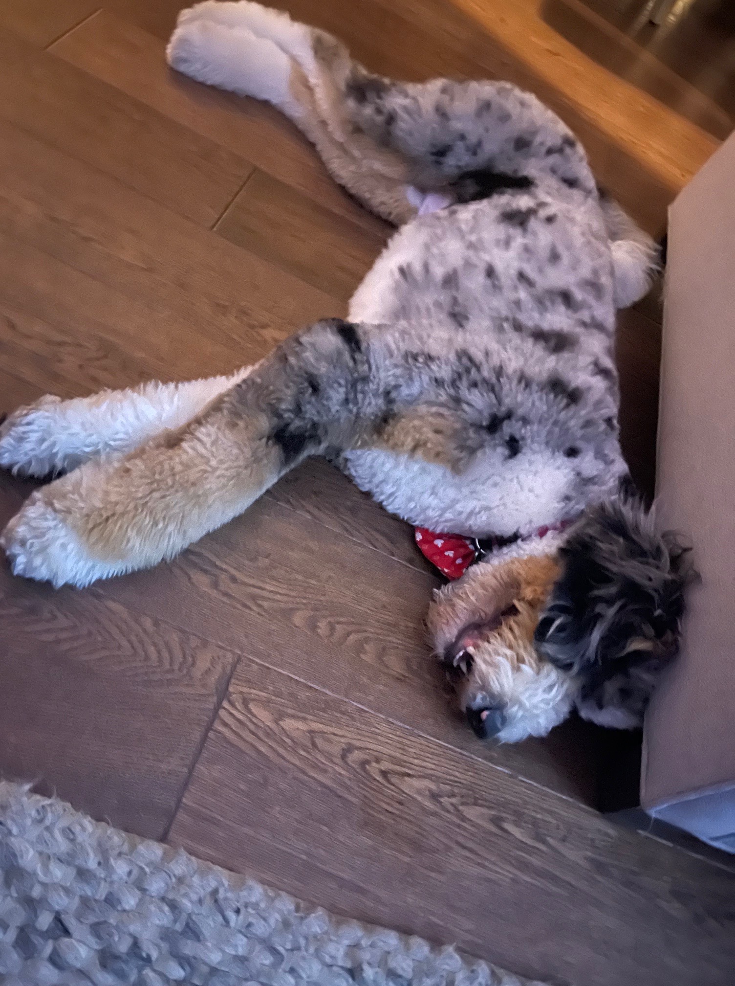 Liza (Standard Poodle) and Chewie (multigenerational Standard Bernedoodle). Expected to be approx 45 -55lbs as adults.