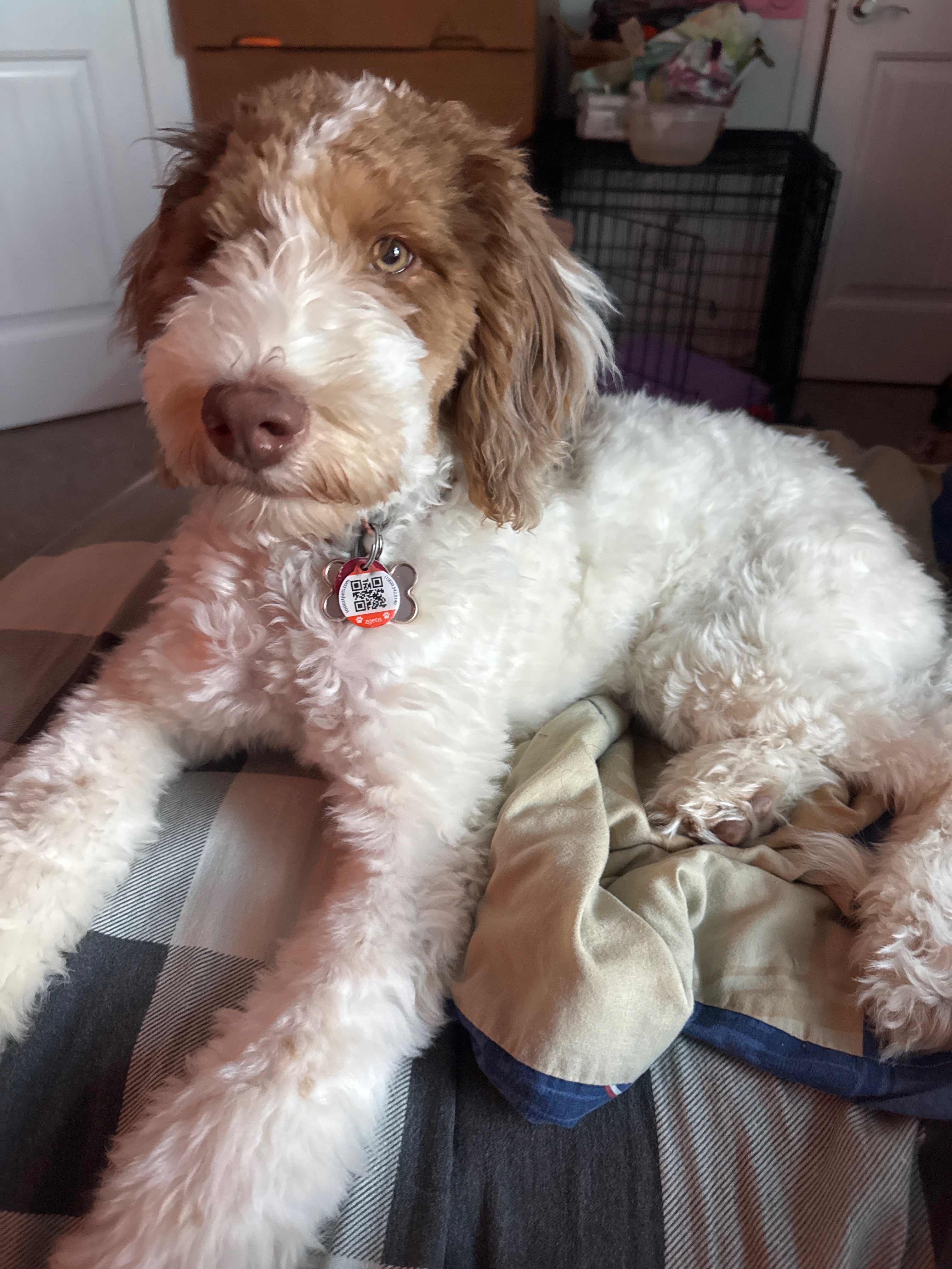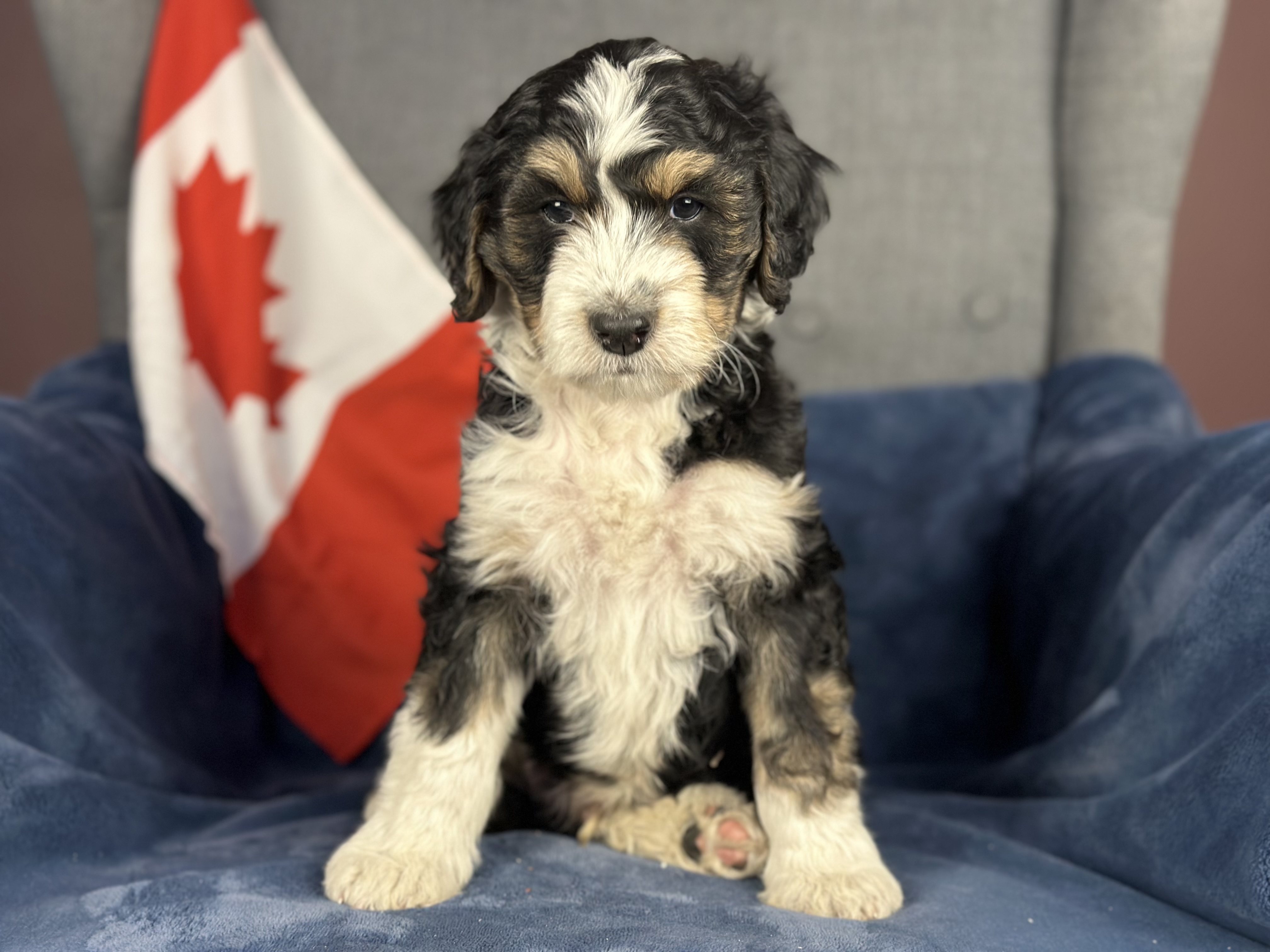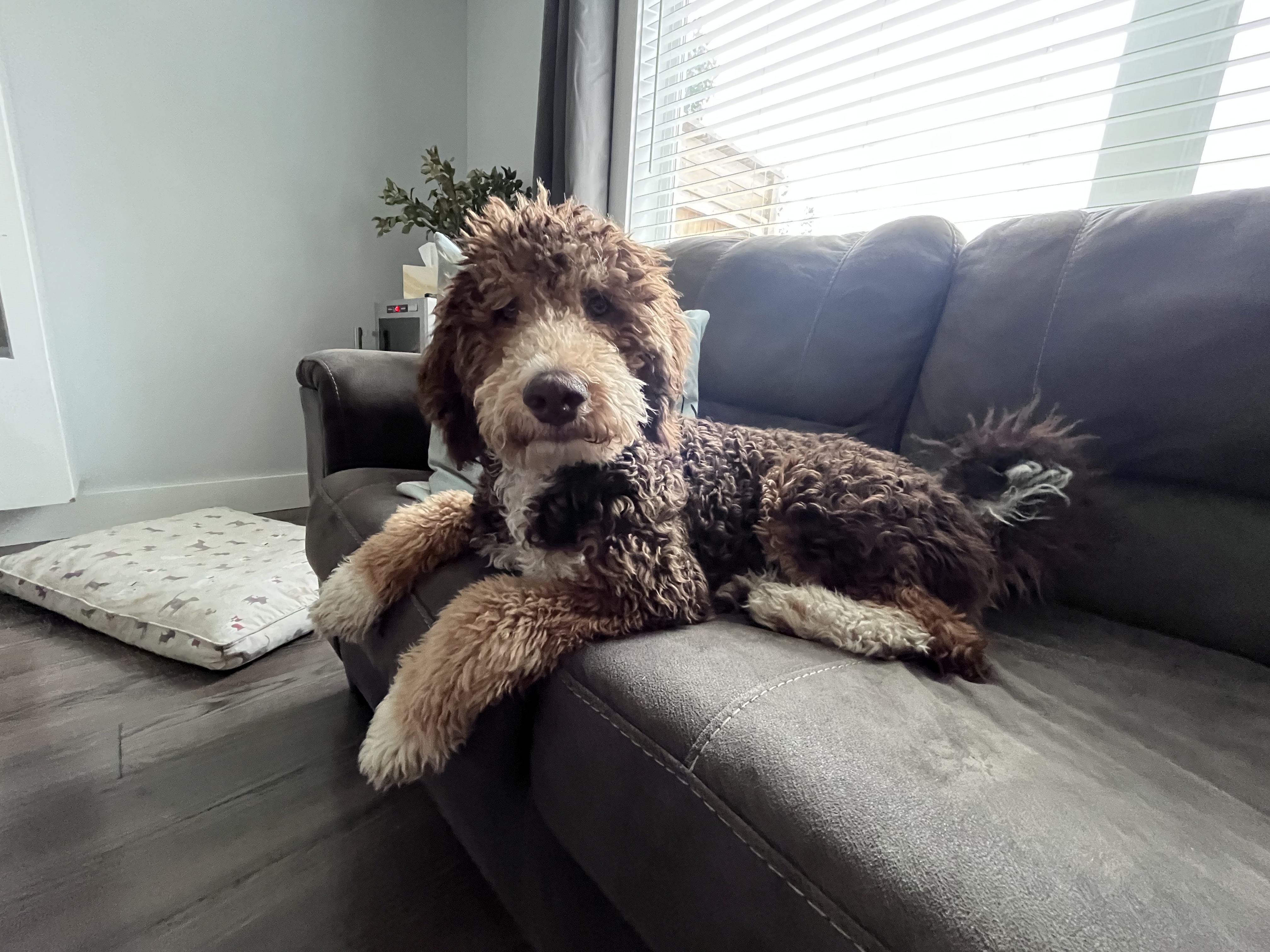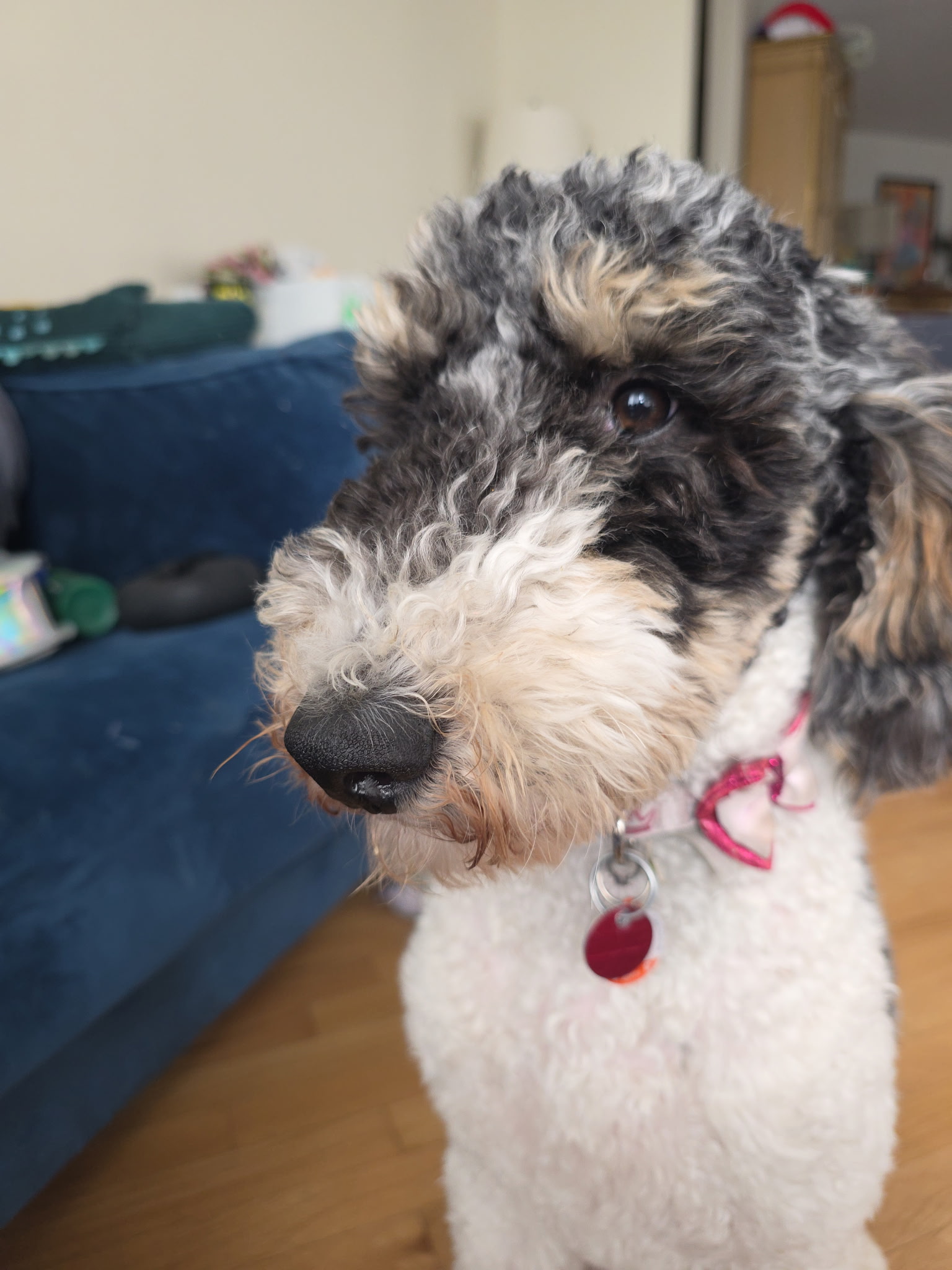 Liza (Standard Poodle) and Chewie (multigenerational Standard Bernedoodle). Expected to be approx 45 -55lbs as adults.